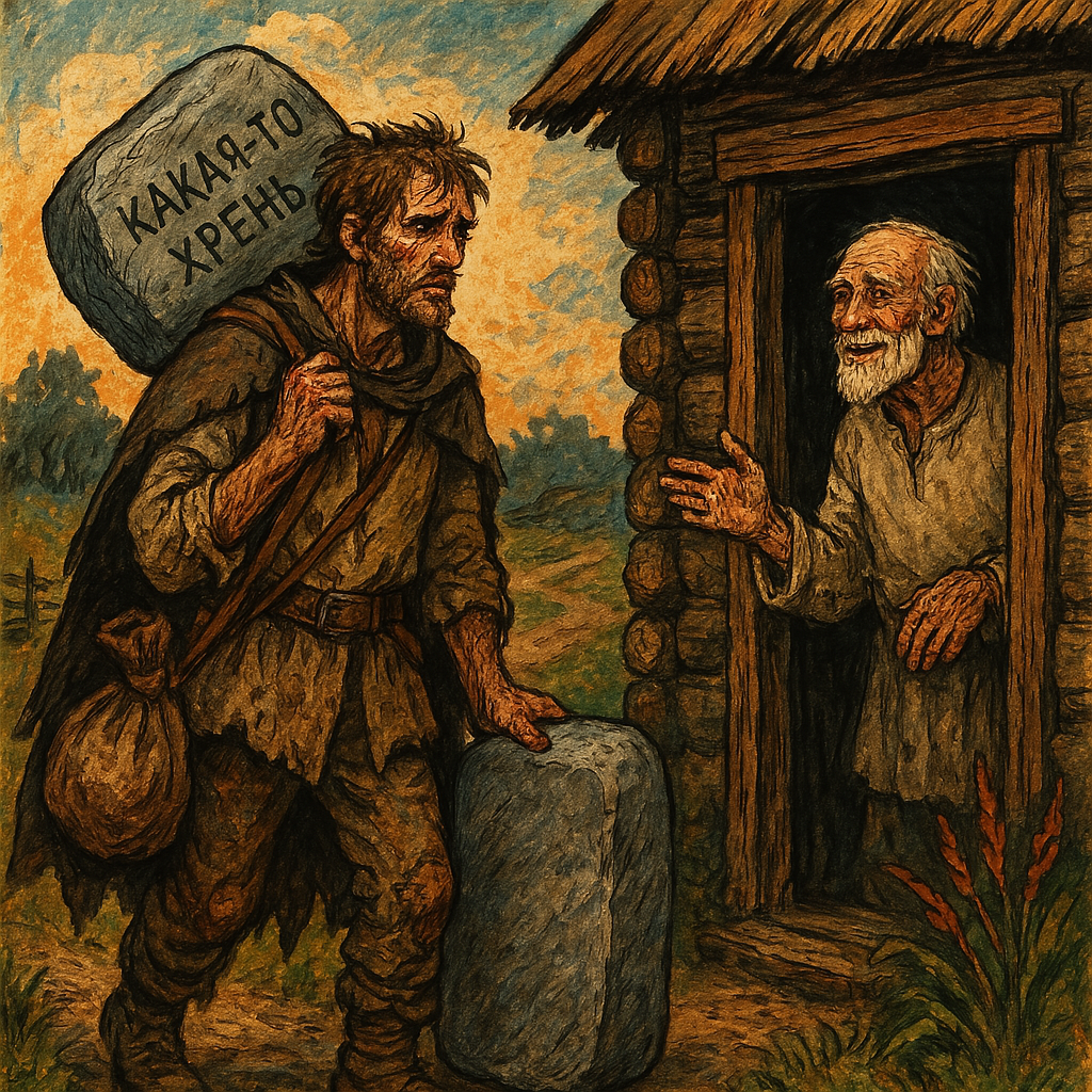 Это история о моём долгом пути к мудрости. Пути, по которому идут многие из нас, но доходят лишь единицы, ибо дорога эта тяжела и терниста. Я рос сильным бесстрашным юношей, мечтающим о дальних странах и неведомых чудесах, что скрывал горизонт. И вот в день моего семнадцатилетия отец всучил мне котомку с нехитрой снедью, обнял и послал к Такой-то Матери. Прямо так и сказал: «Ступай-ка, сынок, к Такой-то Матери, дабы указала она тебе путь к мудрости». С радостью на сердце я отправился в путь. Шли дни, недели, месяцы. Осень зимой сменилась, а за морозами стылыми и тепло весеннее миру явилось. А когда лето нагрянуло, забрёл я в топкое болото, где кикиморы детскими голосами кричат, а на каждой мшистой кочке сидит нечисть чёрная с глазами совиными. На островке средь коварной трясины, в ветхой избушке поросшей грибами погаными, я и обнаружил Такую-то Мать. Узнав, что я ищу, она послала меня на три буквы. Так и сказала: «Ступай, парень, на три буквы. Там обретёшь искомое». И я снова отправилс