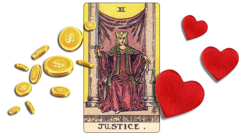 Аркан Правосудие вносит рассудочную составляющую в чувства, и немного охлаждает и упорядочивает даже самые прекрасные карты. Ну, вот, например, сочетание Правосудия и Солнца.