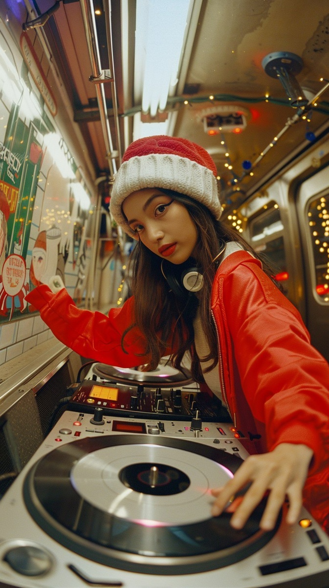 Создано на основе запроса: 35mm film still, fisheye pov, dj anime girl in the subway wall playing on the turn table, urban hi tech outfit with christmas styling --- Автоперевод: 35 -миллиметровый фильм Still, Fisheye Pov, DJ Anime Girl в стене метро играет на ходе на столе, Urban Hi Tech Outfit с рождественским стилем Отлично получилось? 🤔 https://dzen.ru/id/65c0c65c86e4f837c27b24d7 #ИИ #AI #нейросеть #midjourney #art
