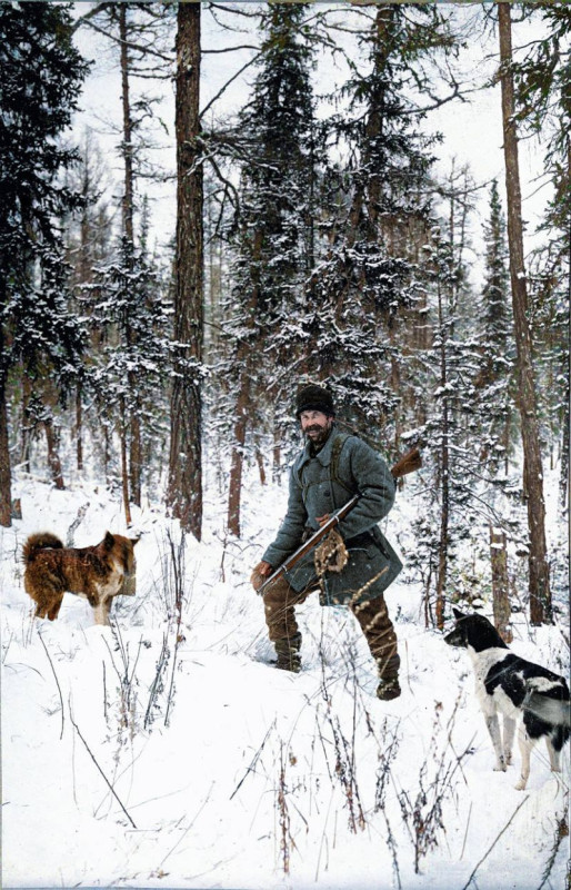 Редкая фотография: Иосиф Виссарионович Сталин охотится в ссылке, колоризация. Думается, эта фотография вдохновила одного из авторов художественной сталинианы: Пётр Плахотный (1908–1963). Сталин в ссылке. 1940