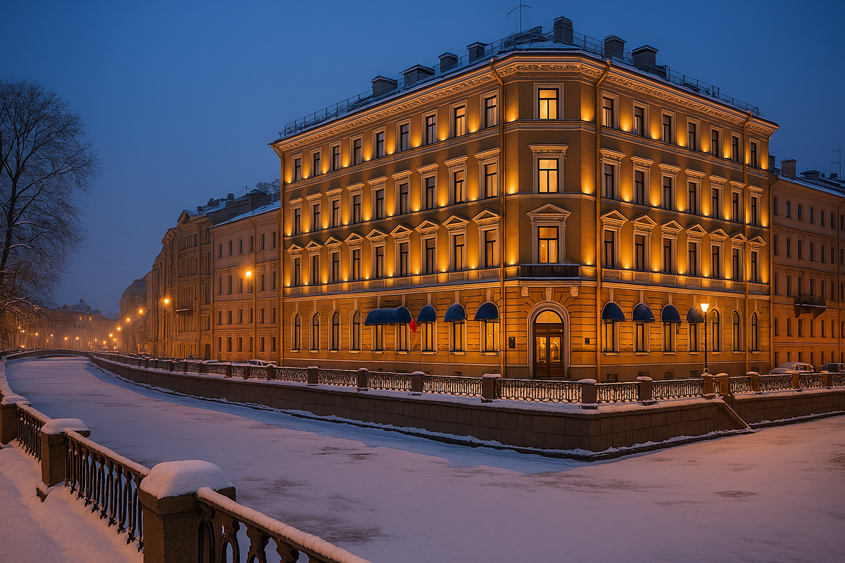 Уютный отель с видом на набережную реки Фонтанки. В новогоднюю ночь 2025 года предлагает банкет с живой музыкой, конкурсами и поздравлениями от Деда Мороза.