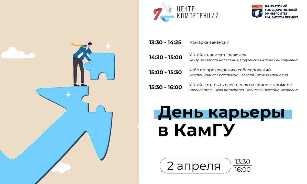➡️ 14:30-15:00 — Мастер-класс «Резюме» от Центра занятости населения Камчатского края