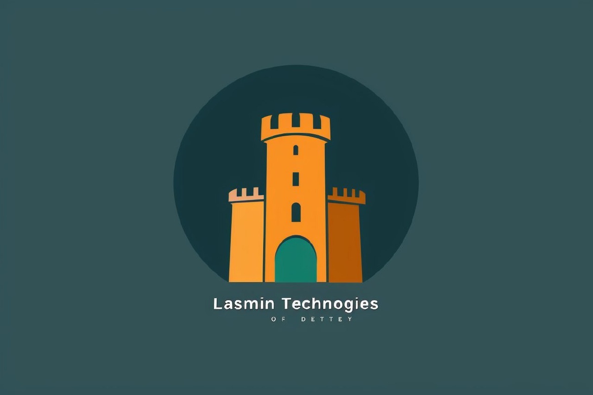 Автоперевод: Чистый, современный логотип для «Lasmin Technologies» с минималистским силуэтом башни цитадели, символизирующей безопасность и возможности наступления, в сочетании с названием компании в Clarendon Font.