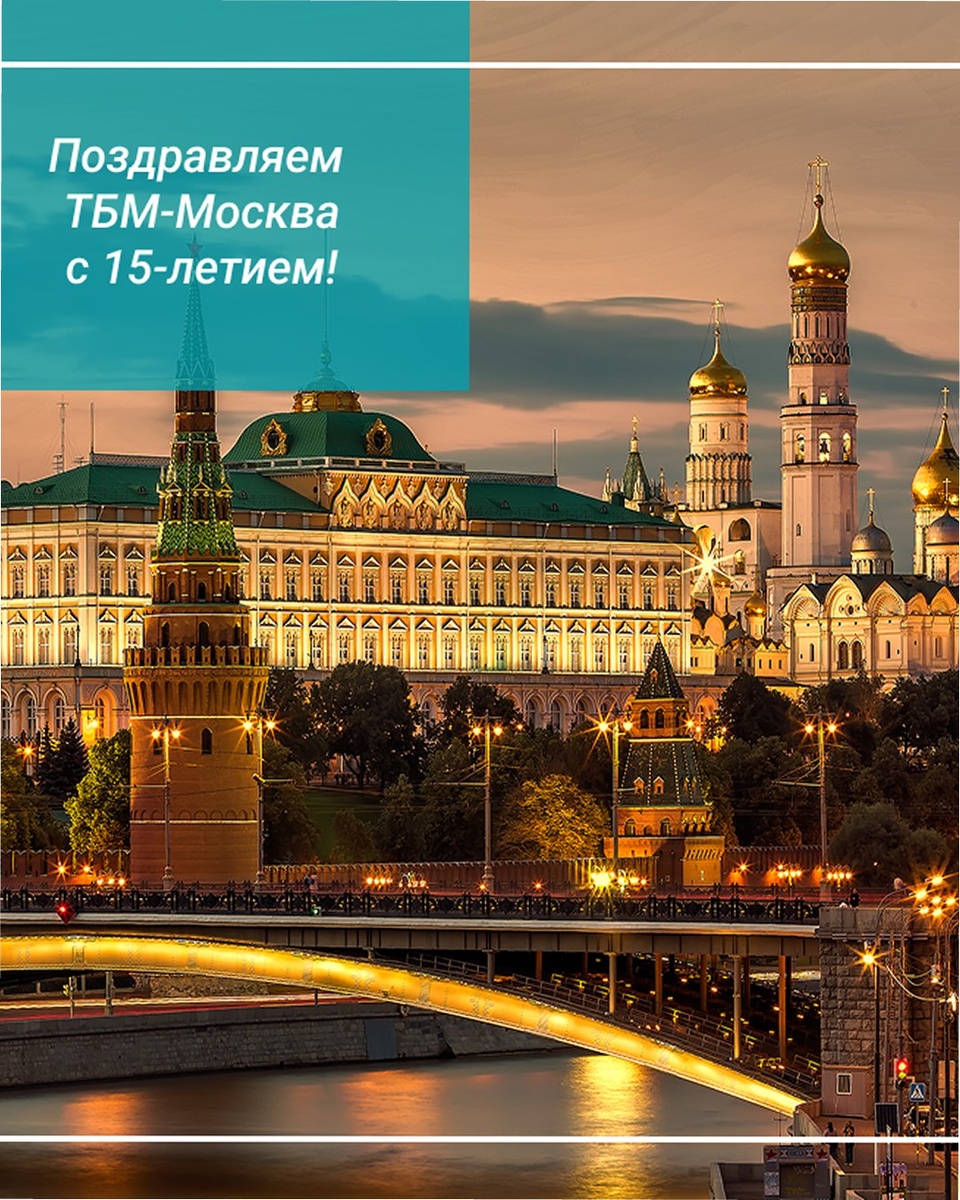 От всей души поздравляем коллектив ТБМ-Москва с юбилеем. Желаем устремлённости к успеху, высокой репутации и безупречного качества работы. Пусть всегда имеется возможность для реализации грандиозных планов и для вашего коллектива не будет ничего сложного и невозможного.