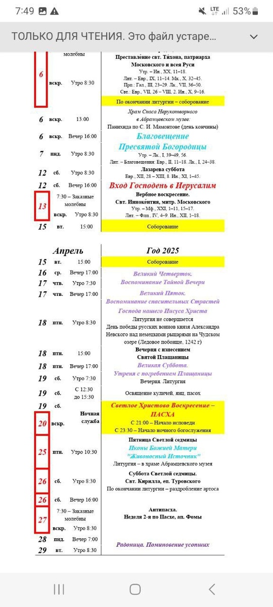 ❗️❗️❗️Дорогие друзья! В богослужебном расписании нашего храма появились важные изменения. Таинство Соборования будет проходить не 6 апреля после службы, а 10 апреля в четверг в 15.00 Пожалуйста, сообщите это всем, кто желает поучаствовать в Таинстве Соборования в нашем храме.