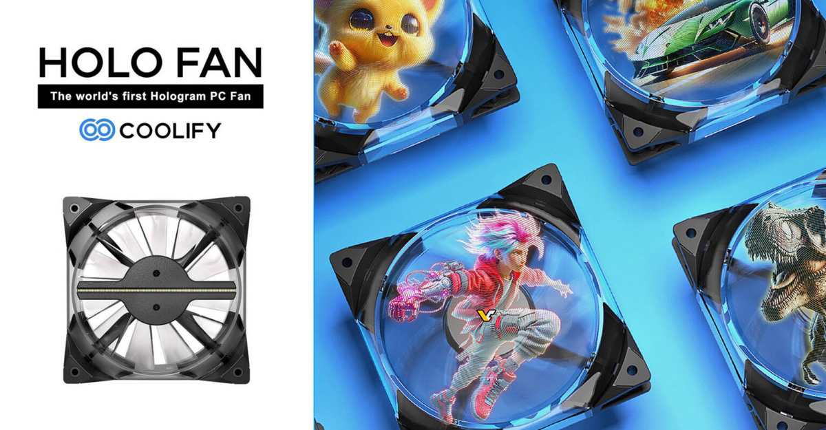 Накануне компания Coolify намекнула на скорое появление на рынке первого в мире вентилятора с возможностью вывода голографического изображения — Holo Fan. Изначально компания Coolify представила данные вентиляторы ещё в 2024 году на выставке Computex. Однако, на тот момент производитель раскрыл мало информации, а некоторые эксперты даже не были уверены, что данные вентиляторы выйдут на рынок. Всё же Holo Fan сумели произвести впечатление. Конечно, речь идёт не совсем о голограмме на вентиляторе. Вывод изображения происходит за счёт светодиодных полос, установленных на лопасти. Раскручиваясь до определённой скорости, вентилятор отрисовывает загруженное на него изображение или GIF-анимацию. Стоит отметить, что загрузка изображений и настройка Holo Fan происходит исключительно через смартфон при помощи соединения по Wi-Fi. Устройство потребляет около 10 Вт, а запитывать его придётся от материнской платы. В остальном же это стандартный вентилятор с максимальной производительностью до 2600
