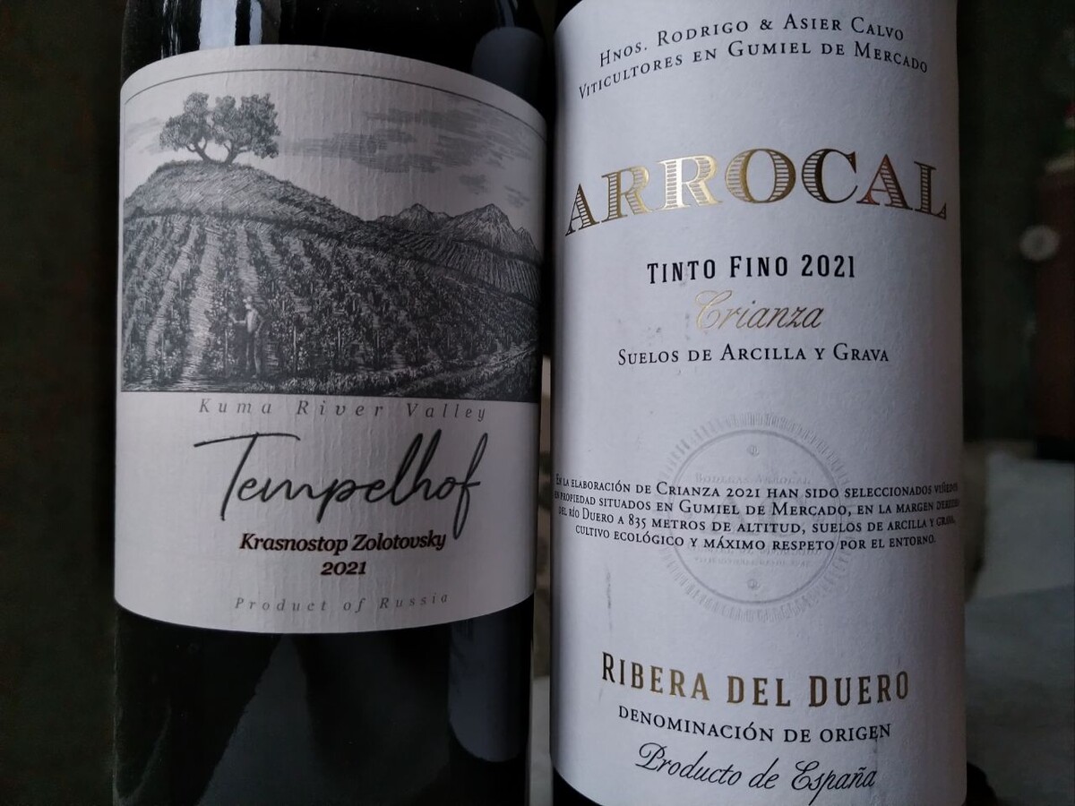 Ближайшие дни во многом будут посвящены красностопу. У меня набралось несколько сравнений вин из нашего красностопа с разными иностранными винами. Tempelhoff, "Галицкий и Галицкий", "Крепость Саркел Гран Резерв", ну и старик "Ведерниковъ". Буду вставлять сюда ссылки после выхода каждого из обзоров. Начну с пары Tempelhoff - Arrocal. Tempelhoff красностоп, Ставрополье, значит, премьера в блоге! Урожай 2021 года, розлив октябрь-2023, брал со скидкой 20% за 3300 рублей, а так цена в районе 4 тысяч. Наш красностоп в лучшем исполнении, или в исполнении, претендующем на что-то особенное, к сожалению, весьма дорог. Потому и соперники у него всегда будут дорогие. Ягодное и кожистое в аромате. Нотки гуаши. Вкус очень танинный, танины вяжущие, молодые, скрадывающие другие вкусы. Кожица недозрелой черной смородины, вишнёвая косточка, нотки кожи. Вино с потенциалом, но больно долгим и неясным. Впечатления не произвело, но, вероятно, ещё не раскрылось., как не до конца раскрыт потенциал Ставрополья