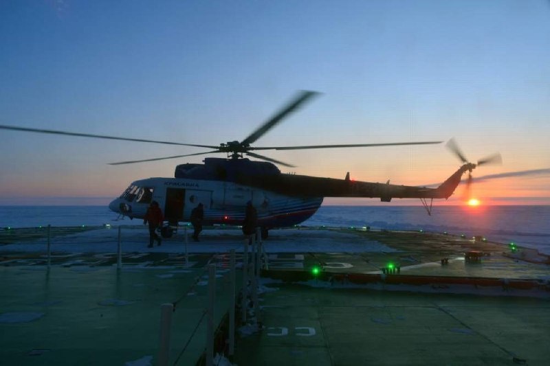 Арктический и антарктический научно-исследовательский институт при поддержке вертолетов МИ-8 МТВ авиакомпании «КрасАвиа» успешно провёл
