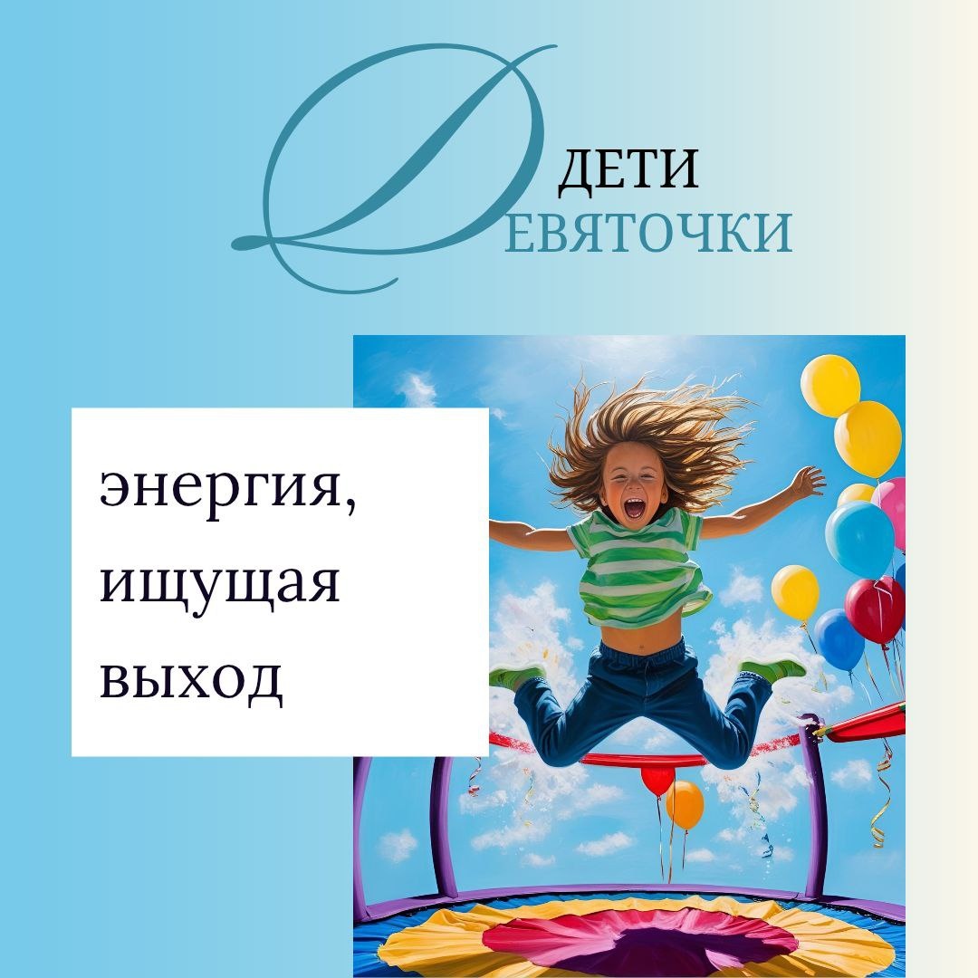 Дети-«девятки»: энергия, ищущая выход ⚡️👦 Эти малыши рождаются с внутренним «двигателем», который постоянно требует действия. Их энергию можно сравнить с бурной рекой — если не направить её в нужное русло, она сметёт всё на своём пути. Но при грамотном подходе из них вырастают целеустремлённые лидеры, способные на великие дела. Особенности характера: - Физическая активность — им сложно усидеть на месте даже 5 минут 🏃♂️ - Прямолинейность — выражают эмоции ярко, без полутонов (радость = крик, злость = топот) - Склонность к доминированию — пытаются руководить сверстниками и даже взрослыми 👑 - Чувствительность к несправедливости — могут заступиться за слабого, даже если это грозит конфликтом Примеры из практики: «Дочь Катя (8 лет) ломала игрушки, когда злилась, — делится мама Анна. — Купили боксёрскую грушу и договорились: бьём только её. Теперь вместо истерик она оттачивает удары, мечтая стать чемпионкой». Советы родителям: ✔️ Введите чёткие правила — «Драться нельзя, но можно топа