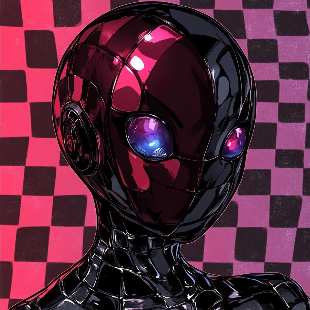 Создано на основе запроса: reddit avatar, burgundy and shiny, red and blue eyes, checkered background