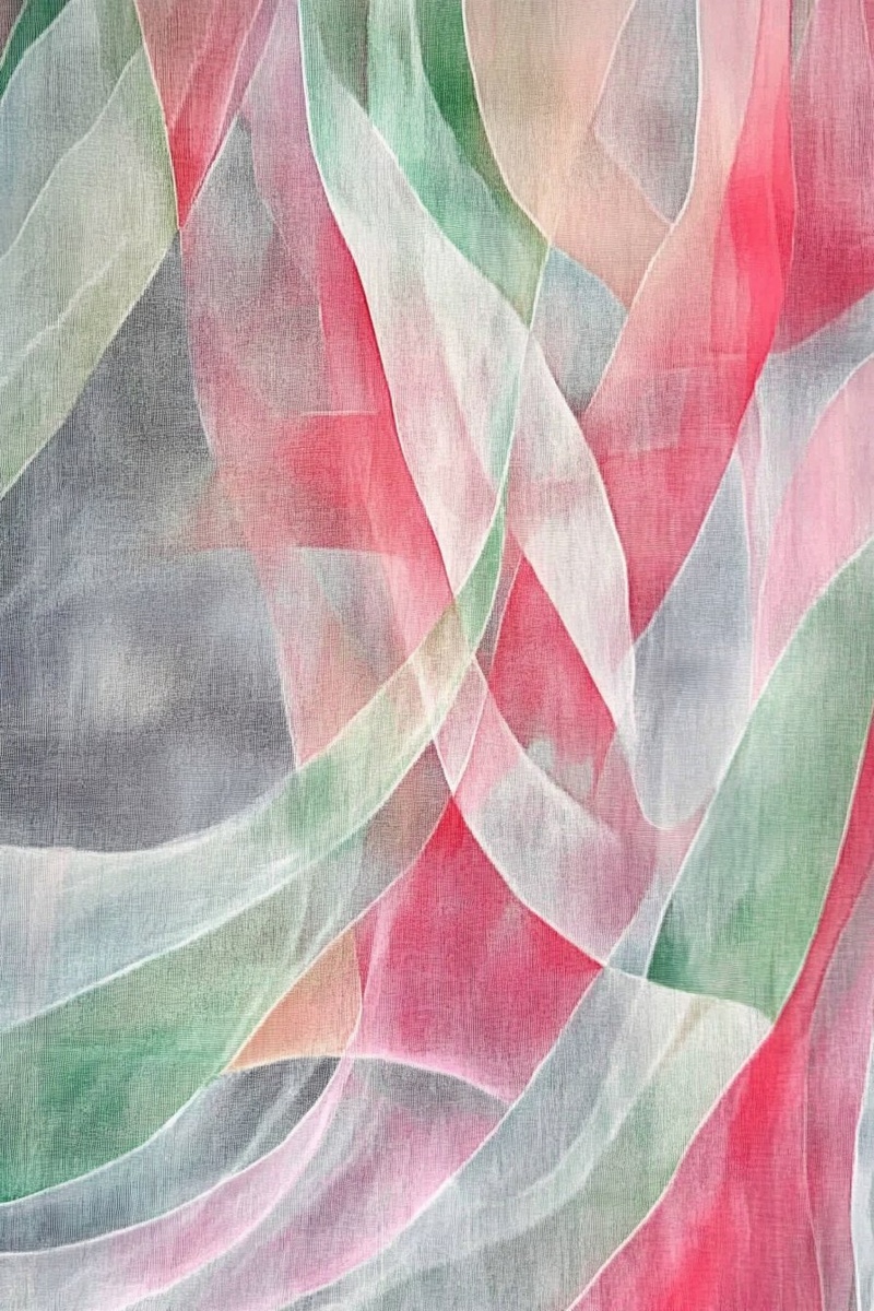 Создано на основе запроса: A watercolor painting of an abstract pattern with stripes and lines in shades of pink, green, gray, white, and red, creating intricate patterns on the fabric, reminiscent of silk curtains or flowing fabrics. The background is a soft gradient from light to dark, adding depth and dimension to the composition. --- Автоперевод: Акварельная живопись абстрактного рисунка с полосками и линиями в оттенках розового, зеленого, серого, белого и красного цвета, создавая сложные узоры на ткани, напоминающие шелковые шторы или текущие ткани. Как тебе вариант? 🤔 https://dzen.ru/id/65c0c65c86e4f837c27b24d7 #ИИ #AI #нейросеть #midjourney #art