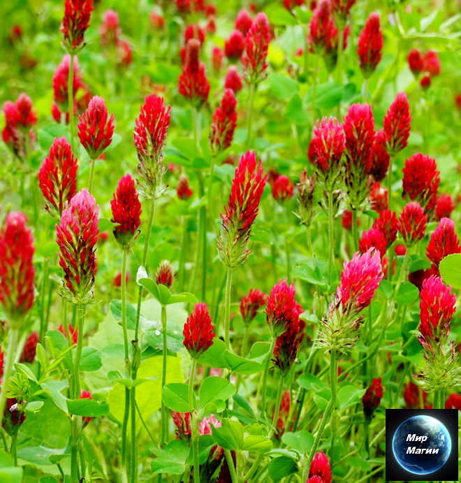 Иногда у клевера бывает четыре листа, и это считается удачей. Красный клевер имеет мужской род и также ассоциируется с силой планеты Меркурий и стихии Воздух.
