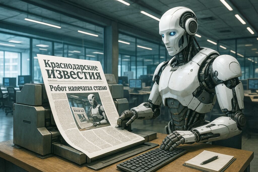 1 апреля 2025 года первая полностью созданная с помощью нейросети российская газета вышла в свет. Этим изданием стали «Краснодарские известия». Еще в апреле 2023 года «Сбер» и РБК выпустили газету с участием нейросетей. Там все шесть материалов, объединенные темой высоких технологий, писали журналисты, а вот алгоритму доверили оформить 11 вставок справочного характера и шесть иллюстраций. Не прошло и полугода, как в октябре «Газета.Ru» заявила, что тоже не отстанет, и внедрила ИИ от Сбера, который с умным видом подбирал видео для текстов. Мы, журналисты газеты «Краснодарские известия», представляем вашему вниманию первую газету в России, написанную искусственным интеллектом. Идея родилась, как и все великие планы, с легкой руки пятничного креатива. Хотели к 1 апреля сделать розыгрыш — ну, знаете, что-то смешное. Может, даже остроумное. Но кто бы мог подумать, что невинная шутка обернется историческим моментом: перед вами первый в России номер газеты, полностью созданный нейросетями, —