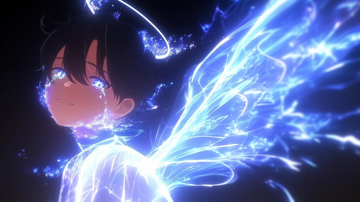 Создано на основе запроса: Anime movie PV, a handsome man, angel wings, broken wings, wallpaper, magical scene