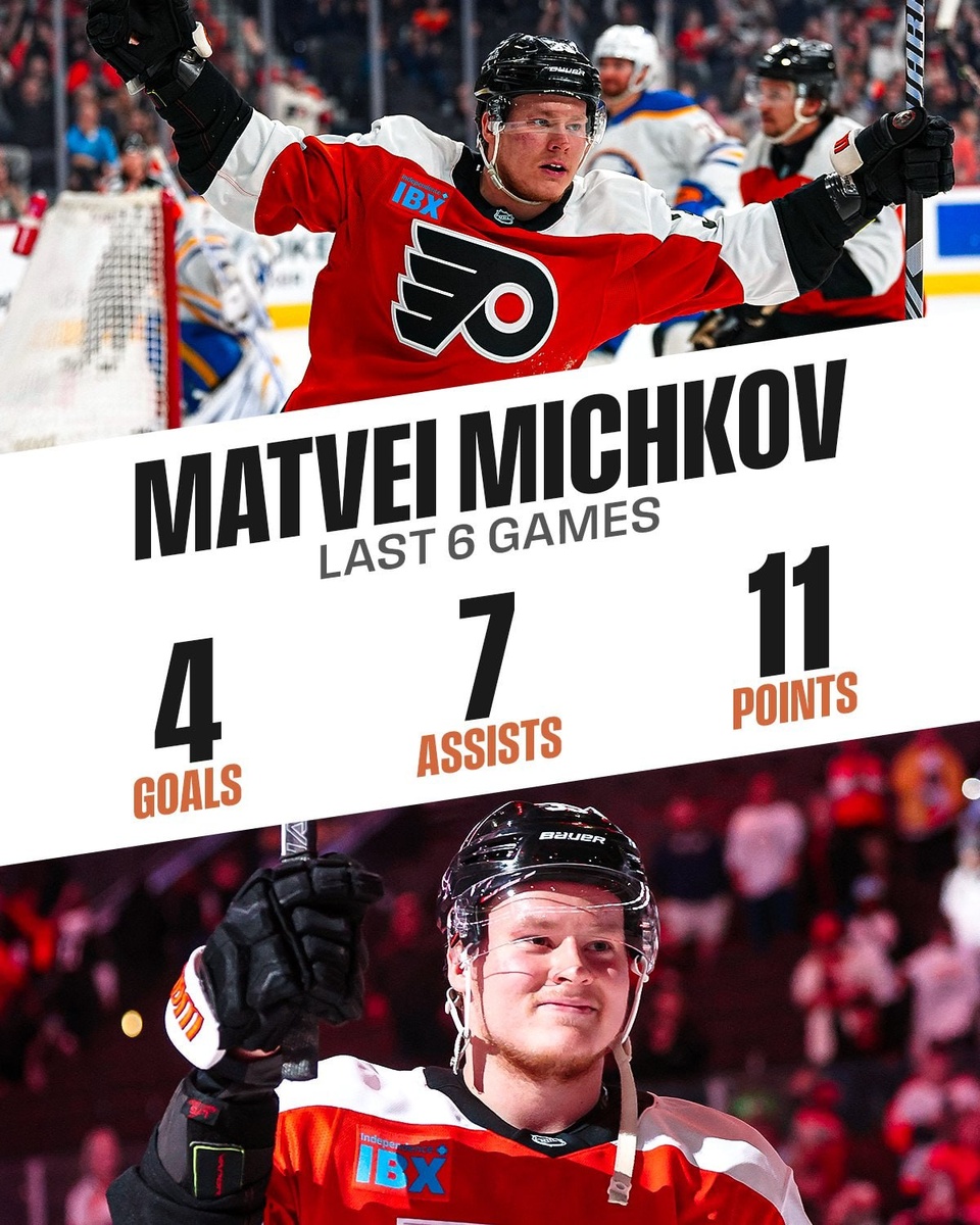 📢 #NEWS 🇺🇸 Райан Леонард подписал контракт новичка с командой. Восьмой пик драфта 2023 года. 30+19 в 37 играх за колледж Бостона в этом сезоне. Чемпион NCAA, золото и серебро U-18, два золота U-20 со сборной США. 🗻 Тэйлор Макар присоединится в следующем сезоне к своему брату Кейлу. Контракт на 1 год, кэпхит 925 тыс $. В нынешнем сезоне 30 очков в 38 играх в NCAA. LW, выбран в 7-м раунде на драфте 2021 года под общим 220-м номером. 24 года. 🥅 Гэбриель Перро подписал контракт новичка. 23-й пик драфта 2023 года. Это сын Яника Перро (14 сезонов в НХЛ, 859 игр, 516 очков). 🟠 Матвей Мичков набрал 0+2 в матче с 🐅. После отставки Тортореллы на его счету 4+3 в трёх играх. С 22 февраля Мичков лидирует в НХЛ по количеству очков в формате 5-на-5: 21 балл. Сегодня победа его команды со счётом 2-1, третья подряд. 🗻 Нэйтан Маккиннон в третьем сезоне подряд добрался до отметки минимум в 110 очков. Он 12-й игрок в истории НХЛ, кому это удалось, а также второй среди действующих (также три р