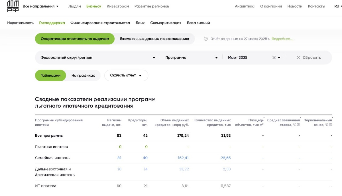Оперативная отчётность по льготному ипотечному кредитованию.