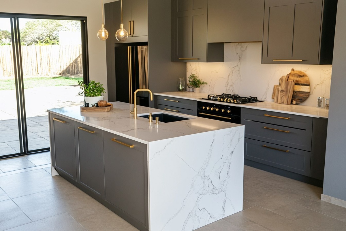 Создано на основе запроса: small kitchen, warm grey matte cabinetry, sleek handless Scandi design, there's a small window and counter, the island is adjacent to the wall counter, the marble is a white marble with grey and beige goldish veining, brass faucet at the counter at the wall by the window, black glass stove on the island, the door is on the left , open plan, light beige gery matte floor tiles, warm luxe modern aesthetic, the outdoor is Botswana but you can see the front yard and car garage by the window --- Автоперевод: Маленькая кухня, теплые серо -матовые шкафы, гладкий дизайн скандирующих рук, есть небольшое окно и стойку, остров примыкает к стойке стены, мрамор - это белый мрамор с серо -серого и бежевым золотым обезжиренным, латунный кса Неплохо вышло? 🤔 https://dzen.ru/id/65c0c65c86e4f837c27b24d7 #ИИ #AI #нейросеть #midjourney #art