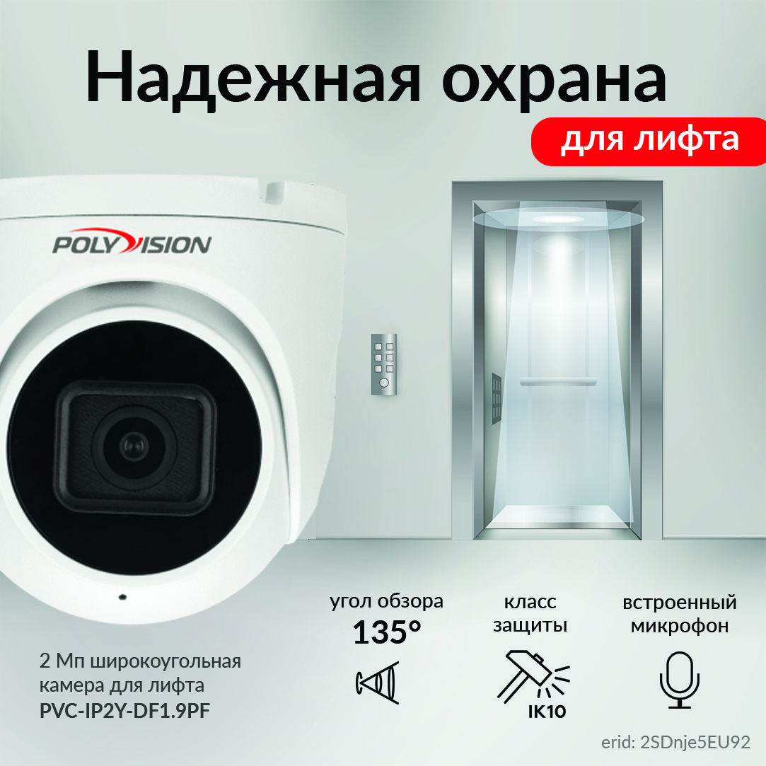 Лифт – зона повышенного риска: здесь возможны конфликты, вандализм, кражи и даже чрезвычайные ситуации. Обычные камеры не всегда эффективны из-за тесноты и сложных углов обзора. Широкоугольная камера PVC-IP2Y-DF1.9PF от ТМ Polyvision решает эту проблему, обеспечивая полный контроль за происходящим внутри кабины🎥 ⭐Преимущества широкоугольной камеры PVC-IP2Y-DF1.9PF для лифта: ✅Полный обзор без «слепых» зон Объектив с фокусным расстоянием 1,9 мм позволит получить угол обзора 135° и захватить всю лифтовую кабину, включая пол, двери и панель управления и «слепых зоны», в которых могут скрываться преступники. ✅Запись в условиях низкой освещенности Разрешение 2 Мп (Full HD), светочувствительная матрица и ИК-подсветка без бликов в объективе обеспечит четкое и детализированное изображение (например, лиц), даже в условиях низкой освещенности. ✅Защита от вандализма Антивандальный корпус (IK10) выдерживает удары и попытки демонтажа. Металлическое корпус и скрытое крепление предотвращает кражу ил