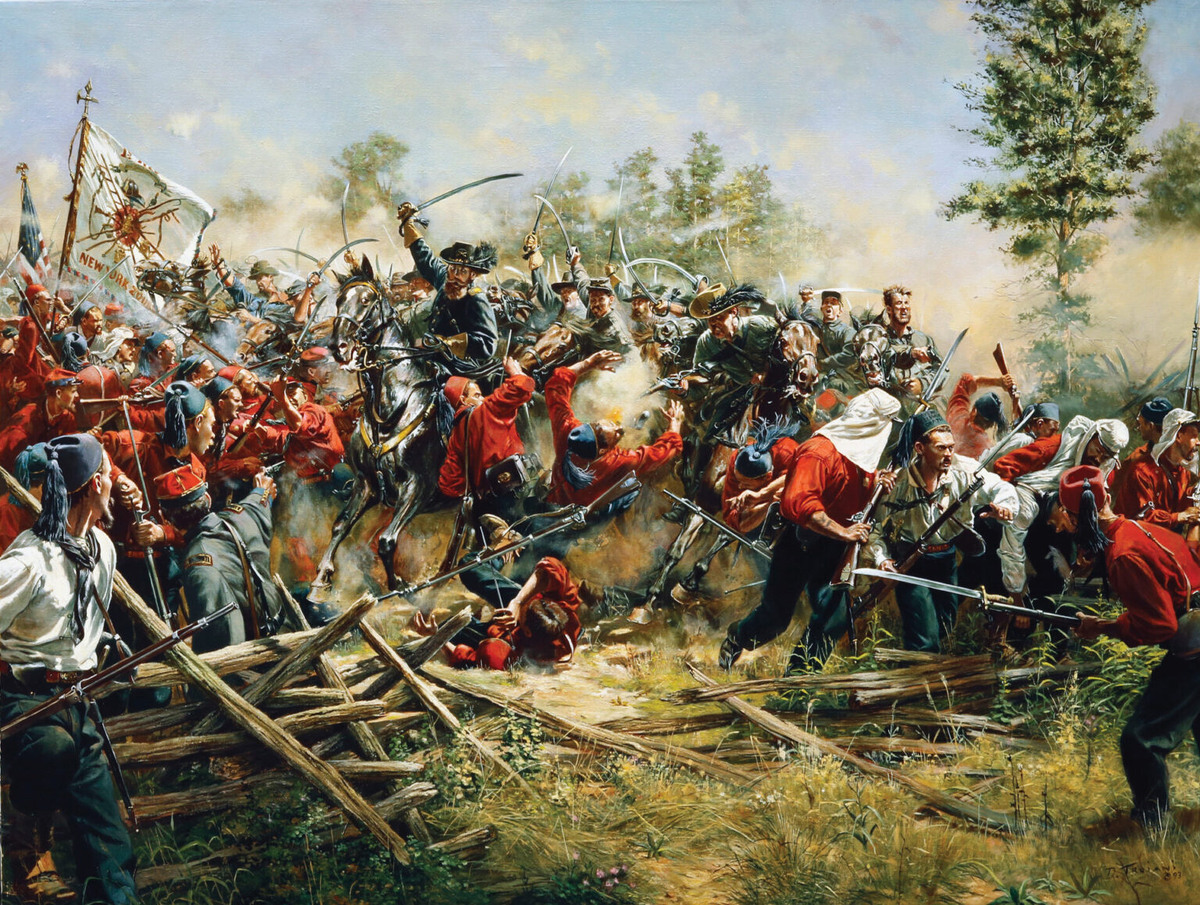 Виргинские кавалеристы прошли сквозь ряды ньюйоркцев, как нож через масло, рубя их саблями и расстреливая из револьверов и карабинов. Яркая униформа зуавов делала их чёткой мишенью для сабельного удара или пули. Лейтенант Блэкфорд вспоминал: