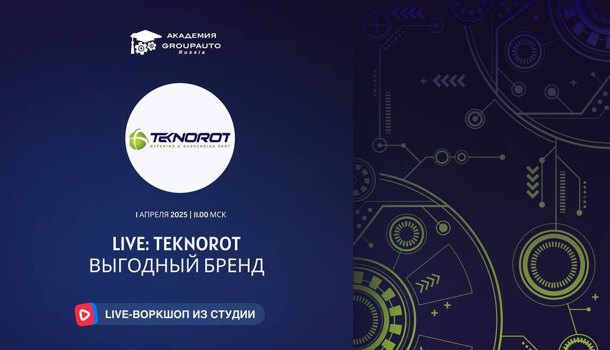 1 апреля прошел воркшоп Академии GROUPAUTO с брендом TEKNOROT Тема встречи: Выгодный бренд Спикер: Александр Коноплев — представитель бренда. Ведущий: Андрей Акимов — специалист GROUPAUTO. В прямом эфире спикеры обсудили ассортимент компании TEKNOROT, особое внимание уделили новинкам. Представитель бренда рассказал о его истории и новостях. В конце спикер и ведущий ответили на вопросы подписчиков, провели викторину. Автор лучшего вопроса и победитель викторины получили призы. Чтобы не пропустить следующие воркшопы и анонсы подписывайтесь на соц.сети компании GROUPAUTO: сообщество ВК «GROUPAUTO Россия»; YouTube-канал «Академия GROUPAUTO»; Telegram чат «Автосервис как успешный бизнес».