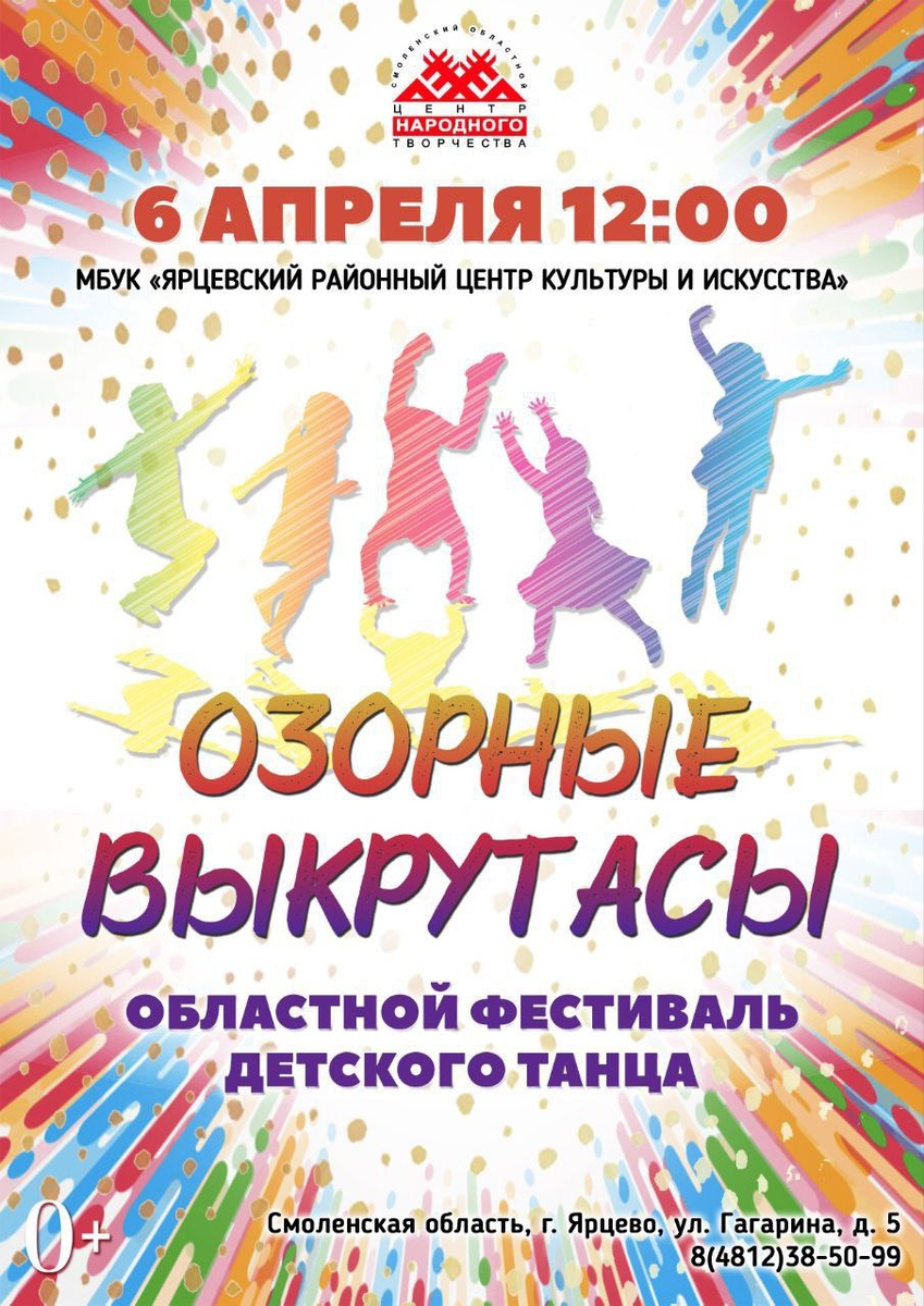 🤸6 апреля в 12:00 приглашаем на незабываемый фестиваль детского танца «Озорные выкрутасы», который состоится в Ярцевском районном центре