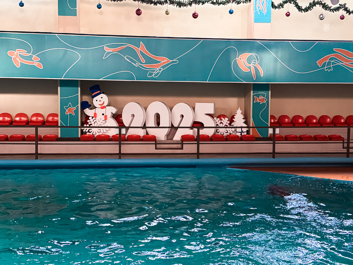 Вот и пришел Новый год — время волшебства, надежд и незабываемых эмоций! В Геленджикском Дельфинарии этот праздник стал поистине уникальным и ярким событием, которое запомнится всем — как взрослым, так и детям! Как только мы переступили порог Дельфинария, нас встретила сказочная атмосфера: зал был украшен блестящими гирляндами, яркими новогодними игрушками и мерцающими медузами. Звуки веселой музыки поднимали настроение, а на улице встречала елочка, напоминая о празднике. И вот, внимание! Началось наше зимнее чудо! Снегурочка со своим помощником Эльфом обратились за помощью в поисках Дедушки Мороза! Новый Год в самом разгаре, но Дедушки нет! Но нельзя опускать руки, приняв героическую роль, поможем нашим друзьям спасти наш праздник! И первым на помощь приходят наши друзья ластоногие! Аля, Гермес, Гудвин и Ляля (сценические псевдонимы) не просто ярко встретили своих гостей, но и показали всю свою ловкость и сноровку, погрузив весь зал в унисон оваций и аплодисментов! В конце каждого вых