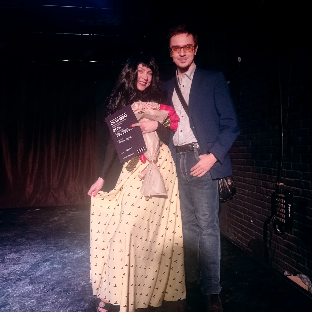 Приехал поддержать участницу студии #ричардфильм Татьяну Острову, выступавшую на отчётном концерте “Серебряный Патиссон” в Москве, в театре на Большой Спасоглинищевском переулоке. Полный зал, неформальная и дружелюбная атмосфера. От организаторов исходил мощный заряд позитива. Татьяна проходила обучение в “ШКОЛЕ ТЕАТРА МОСКВЫ” в группе “Январь 2” под руководством Сергея Сахарова и Павла Сошнина, и как итог показывала номера на отчётном концерте. Задачи у выпускников было три. Первая — изобразить неодушевлённый предмет из “Магазина на диване”. Татьяне Островой выпал циркуль. Выступление завершилось неожиданно эффектно: предназначение было исполнено и зрители увидели нарисованный гимнастической лентой круг. Крайне интересное решение. Из одногруппников Татьяны отдельно хотелось бы отметить Алексея Боксерова, который довольно натурально изображал будильник. Эффектно, элегантно и красиво выступили Мила Оводова и Юрий Коновченко, изображающие дуэт бутылки вина и винного бокала, показав про