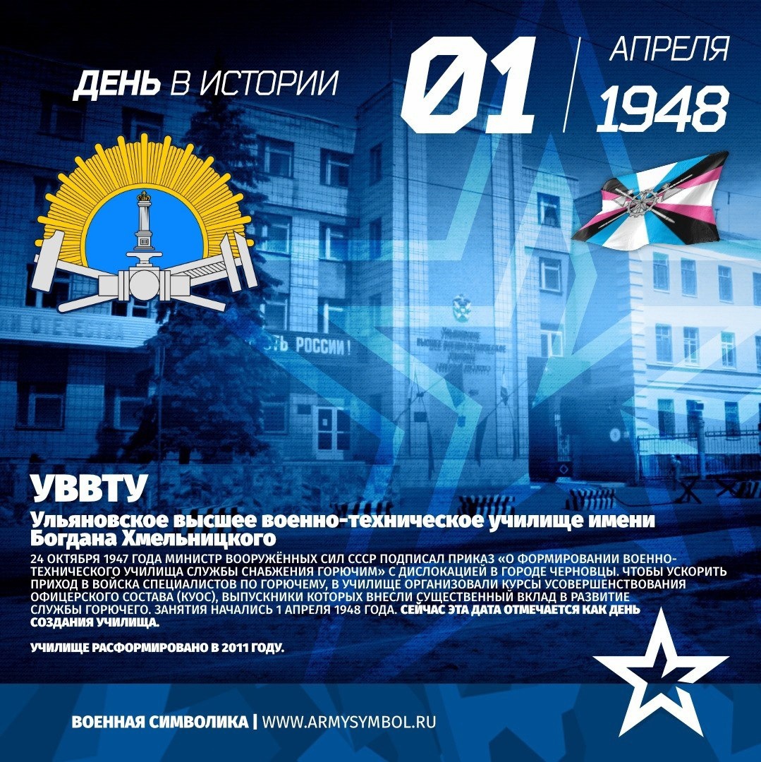Ульяновское ВВТУ с 1947 Ульяновское высшее военно-техническое училище имени Богдана Хмельницкого 24 октября 1947 министр ВС СССР подписал приказ «О формировании военно-технического училища службы снабжения горючим» с дислокацией в городе Черновцы. Занятия начались 1 апреля 1948 года. Сейчас эта дата отмечается как день создания училища. В декабре училище было передислоцировано в город Винница (УССР). Здесь в августе 1950 года и состоялся первый выпуск офицеров службы горючего. Указом Президиума Верховного Совета Украинской ССР от 16 января 1954 в честь 300-летия воссоединения Украины с Россией училищу было присвоено имя национального героя Украины — Богдана Хмельницкого. В августе 1960 училище перебазируется в город Ульяновск, а в 1969 переводится в разряд высших военно-учебных заведений страны. В 1974 состоялся первый выпуск офицеров с высшим военно-специальным образованием, Показать полностью... Подпишитесь на наши группы ВКонтакте и в Одноклассниках - читайте, смотрите и комме