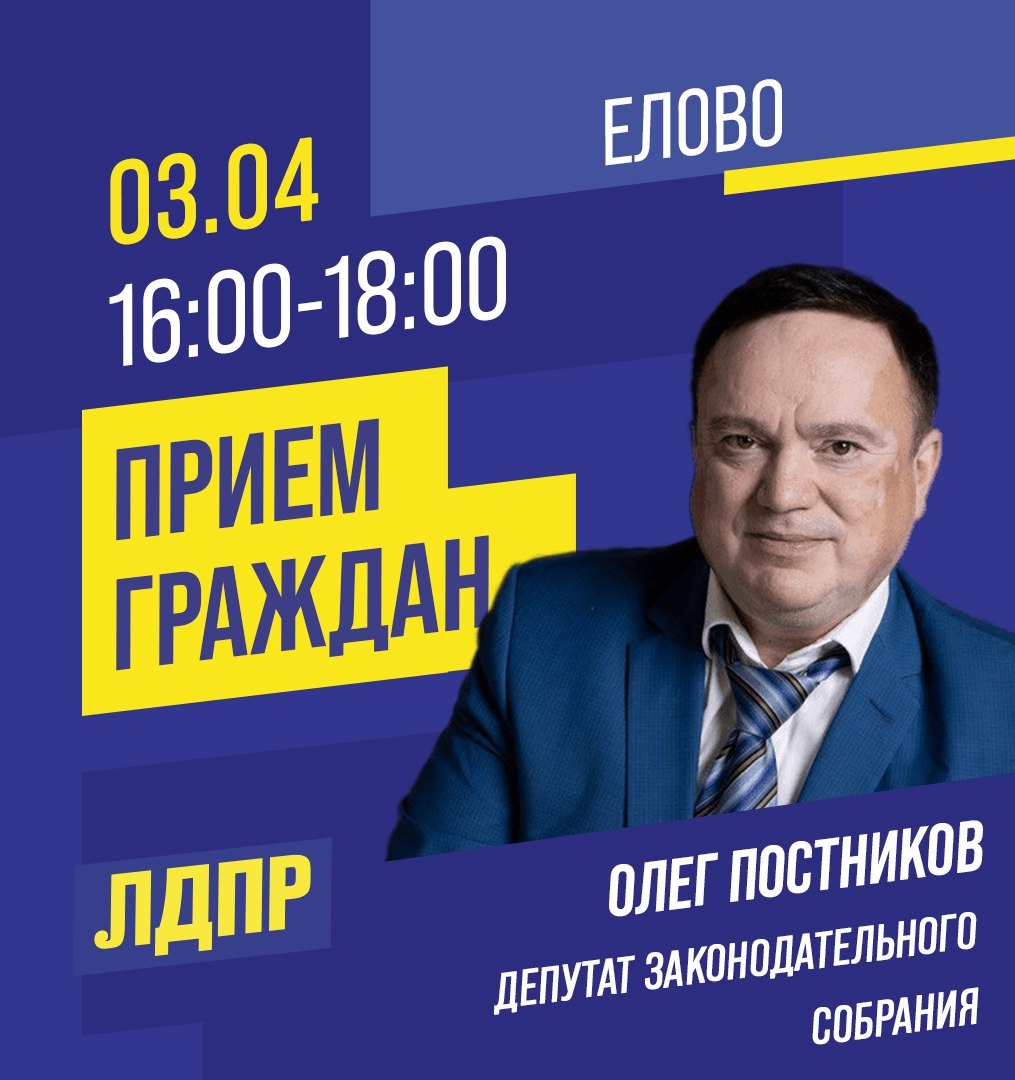 Депутат ЛДПР посетит Елово, чтобы принять обращения от жителей! 3 апреля с 16.00 до 18:00 ждем всех желающих малом зале КДЦ! МБУК "Еловский культурно-досуговый центр" с. Елово, ул. Карла Маркса, д. 17 Телефон для записи +7(342)246-22-98 К депутату можно обратиться с разными проблемами: - Качество дорог - Освещение - Проблемы ЖКХ - Бездействие чиновников Так же на встречу с жителями приглашены представители местной администрации. Олег Постников готов выслушать ваши пожелания, а так же подключит к решению проблем органы местного самоуправления, наборные органы и профильные ведомства. Вход свободный для всех! До встречи!
