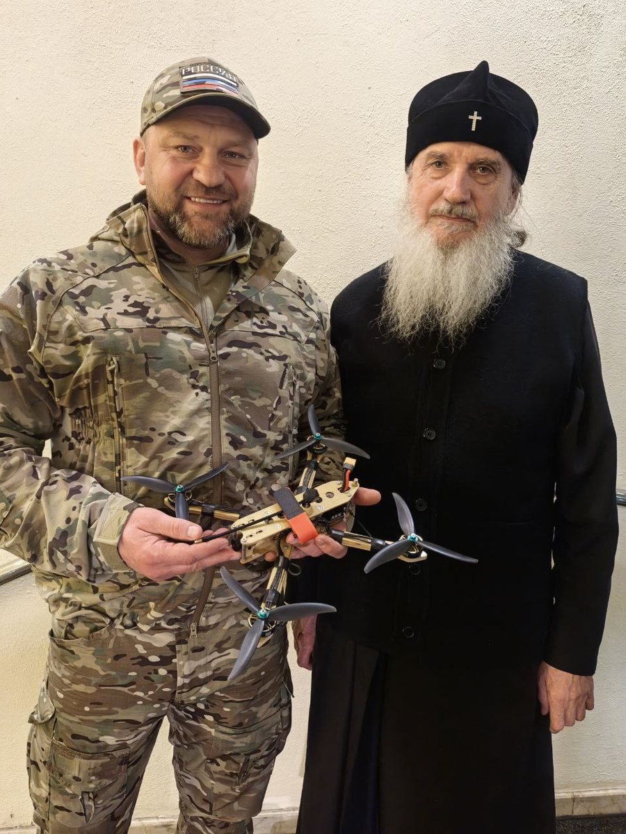 Митрополит Петр на Донбассе встретился с главой Оренбурга Сергеем Салминым, который в феврале ушел служить в зону СВО. В настоящее время мэр руководит группой беспилотных летательных аппаратов на Запорожском направлении в составе батальона БАРС-3. Митрополит Петр передал Сергею Салмину от мужского Свято-Димитриевского монастыря Оренбурга квадрокоптер и систему радиоэлектронной борьбы. Мэр поделился, что очень радостно увидеть на фронте дорогие лица и получить «весточку с родной земли».