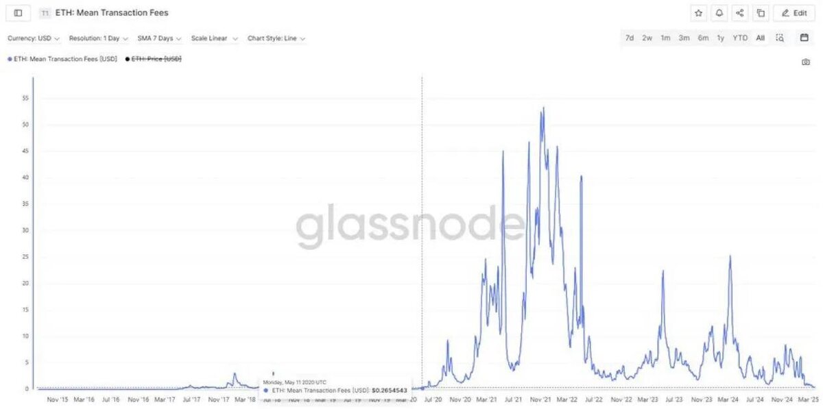 🪙 Комиссии за транзакции в сети Ethereum снизились до уровня середины 2020 года