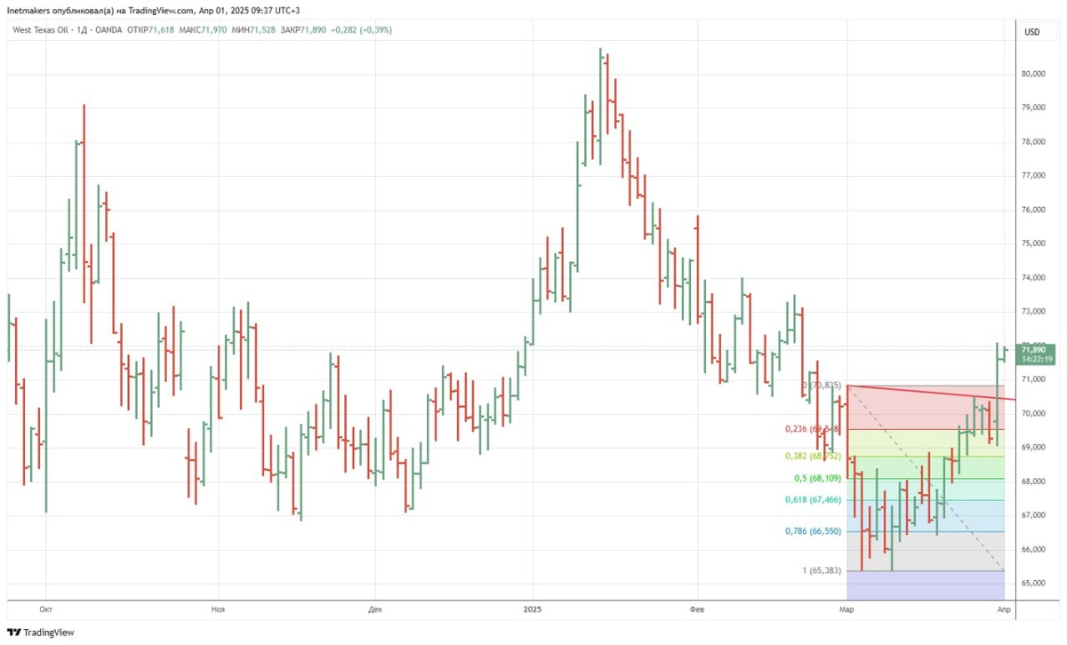 Нефть резко пошла вразрез с технической моделью, что говорит о возможном изменении тренда вверх.