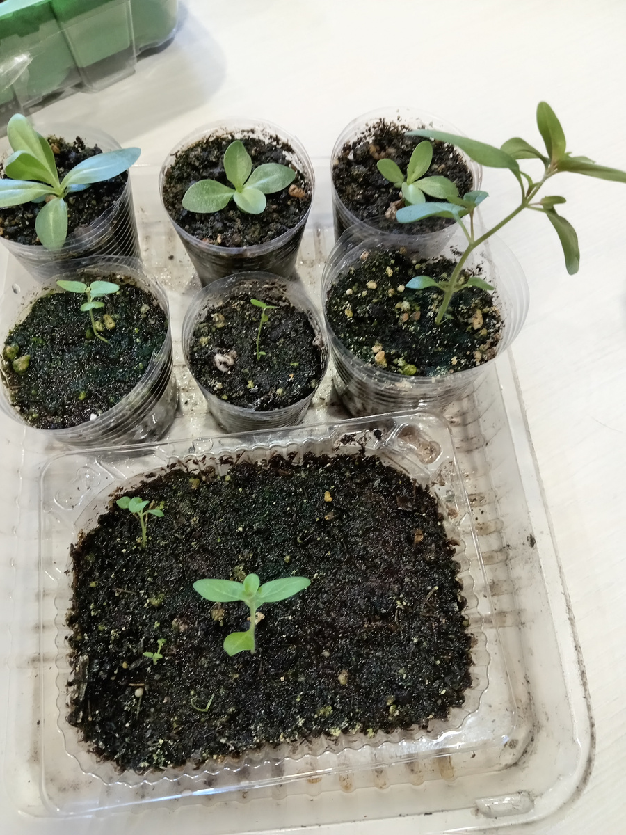 По телефону отчитался, что все. Все, говорит, издохло, подчистую. Пардоньте, говорит, но знали, на что подписывались. Правда, было первое апреля - не особо поверила ему. Но все равно, волнительно, ведь мы с цветами очень не любим расставания. Особенно в такое критичное время. Они должны проснуться, а я - их встретить. А нынче муж встречал. Напугались, наверное 🤣 Приехав домой, а было это в пять утра, я первым делом рванула проверить рассаду. Рассады у нас в этом году очень мало. На первый взгляд все вроде зеленело, и я отправилась отсыпаться. А когда встала, начала ревизию с пристрастием. Ну что сказать, почти ничего не издохло. Только пять стаканов с схизантусом очень плохо выглядели, но это было предсказуемо. Я его посеяла слишком рано, сеянцы критично переросли. Короче, я их выкинула, посею еще раз. И не сейчас, а в конце месяца. Все остальное вполне себе живое. Подведём итоги. Эустомы выжили три штуки из пяти семян, взошло четыре, но одна потом занедужила. Из пяти пачек л