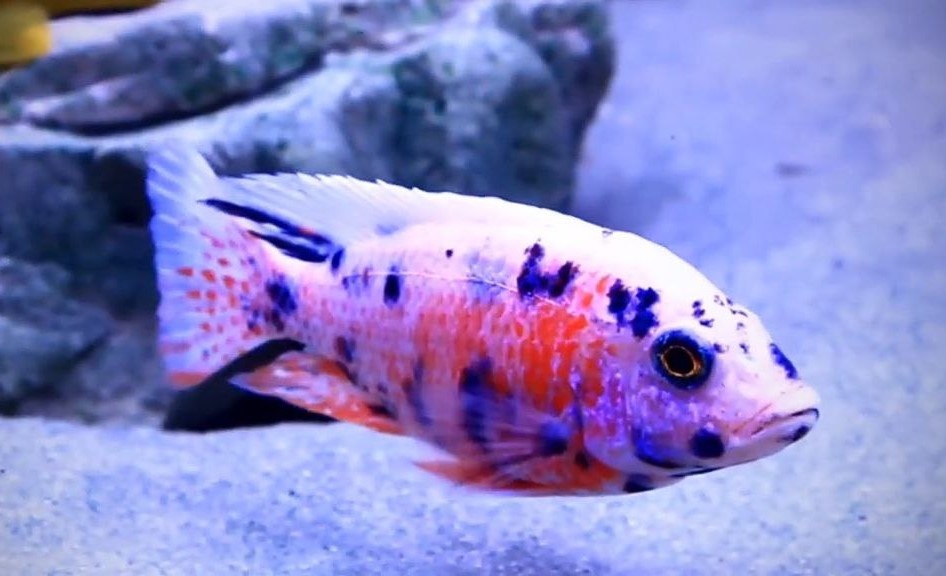 Сухие корма с низким содержанием белка (не подходят как основной рацион) Параметры воды ПоказательЗначениеТемпература24–28°CЖёсткость (dGH)10–25pH7.5–8.5Объём аквариумаот 200 л Можно селить с: Нельзя селить с: Аулонокары – инкубирующие цихлиды: самка вынашивает икру во рту 3–4 недели. История про аулонокару по имени Азур – короля аквариума. В большом аквариуме с песчаными дюнами и каменными замками жил самец аулонокары по имени Азур. Его чешуя пе