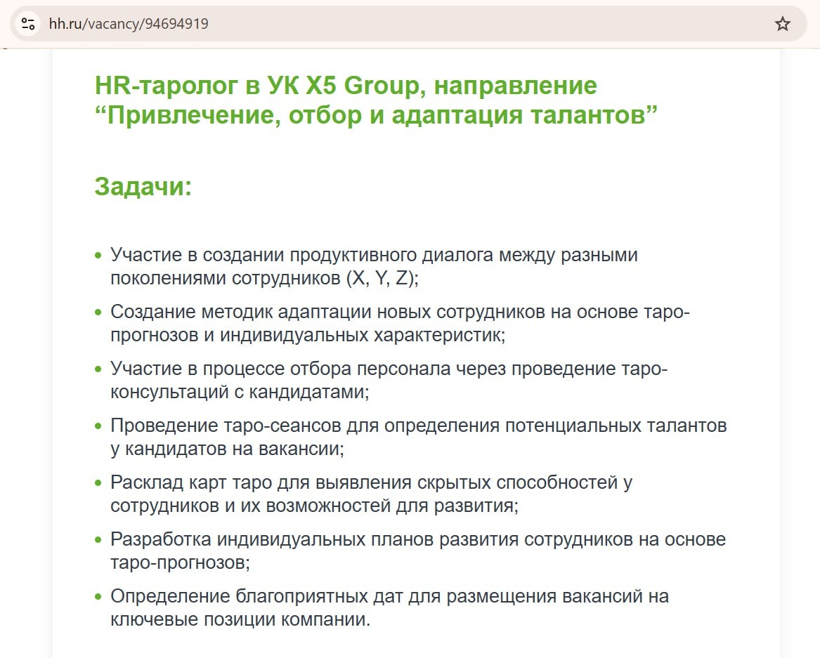Тарологический HR Вспомнила еще одну функцию таро! Вот уже более 5 лет мои способности используют предприниматели, когда им надо решить какие-то кадровые вопросы. У меня на обслуживании)) большая московская компания, занимающаяся проектированием, строительная фирма и еще несколько компаний поменьше. Что может таро в этом случае? Всё! Раскрыть психологические особенности человека, его профессиональные качества, может ли сотрудник соблюдать дедлайны, что беспокоит человека на сегодняшний день, кроме зарплаты, ответственность, умение трудиться в коллективе, соблюдать субординацию, и любые вопросы, которые могут возникнуть у работодателя. Совсем недавний случай, например. Задача - выбрать из 20 человек 3 проектировщиков. Мне присылают только имена. Я делаю подробный анализ личности относительно работы. Из проанализированных мной людей из списка, одному из претендентов оказалось 72 года. Я этого не знала и по возрасту у меня отбора не было. Не стоял такой критерий. Работодатель,
