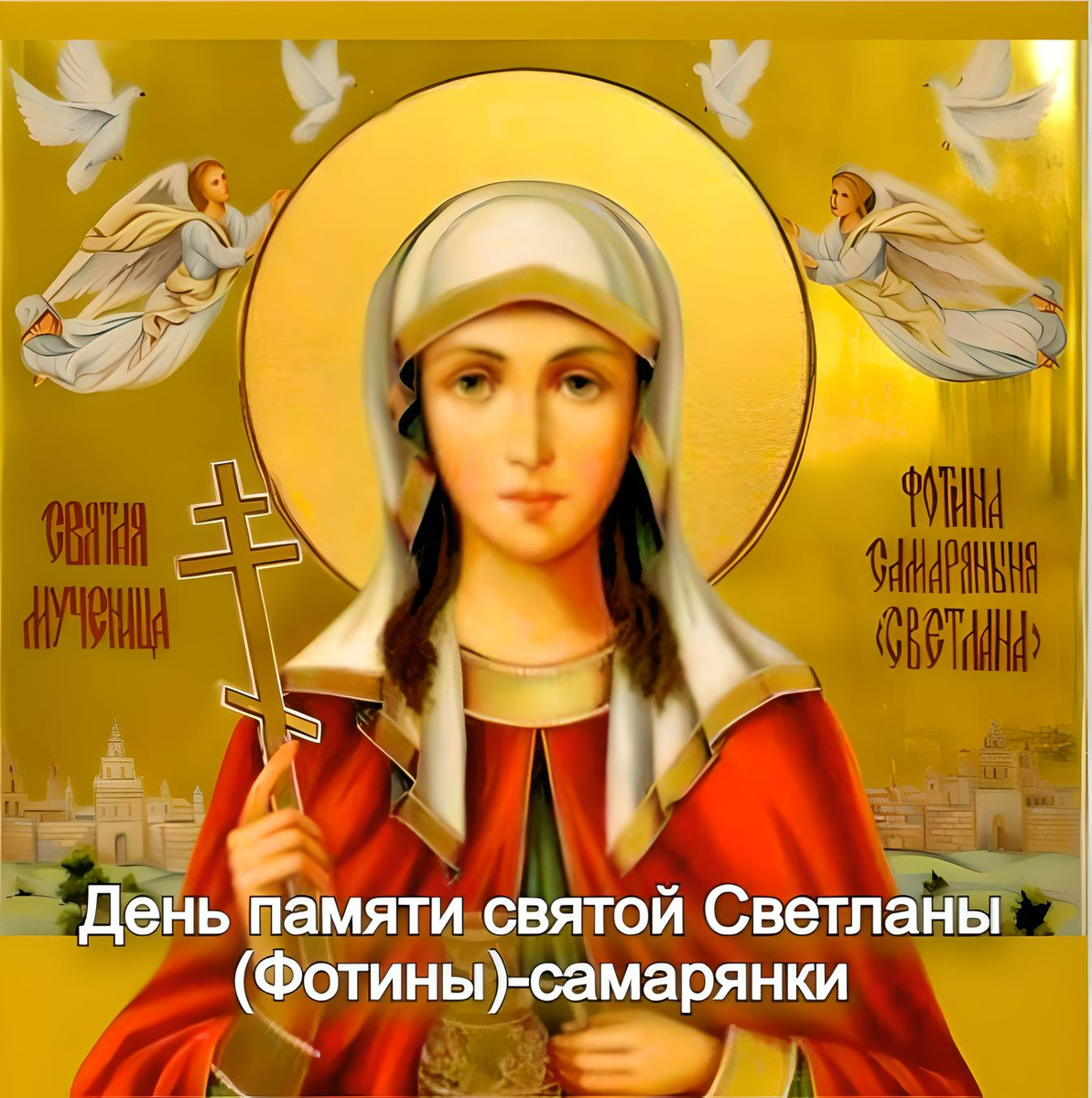 2 апреля вспоминается подвиг веры святой мученицы Светланы (Фотины) самаряныни и пострадавших с ней сестер и сыновей ее. В этот день празднуют свои именины многие христианки с именем Светлана, нареченные в Святом Крещении в честь мученицы Фотины. Светлана происходит от церковного имени Фотина (по происхождению греческого, образованного от древне-греческого φῶς, род. п. φωτός — «свет») посредством прямого перевода. Это та самая самарянка, с которой у колодца беседовал Спаситель (Евангелие от Иоанна, гл. 4). Тогда Господь прозорливо открыл не только всё прошлое женщины, но и ее глаза на жизнь во грехе. Проникнувшись учением Христа, она уверовала и привела к истинной вере четырех своих сестер и двух сыновей. После гибели святых апостолов Петра и Павла Светлана (Фотина) продолжила их дело вместе с сыном Иосием, проповедуя христианскую веру в Карфагене. Другой ее сын, Виктор, проявивший талант военачальника, был отправлен императором в Галилею для расправы над христианами. Но отважный воин