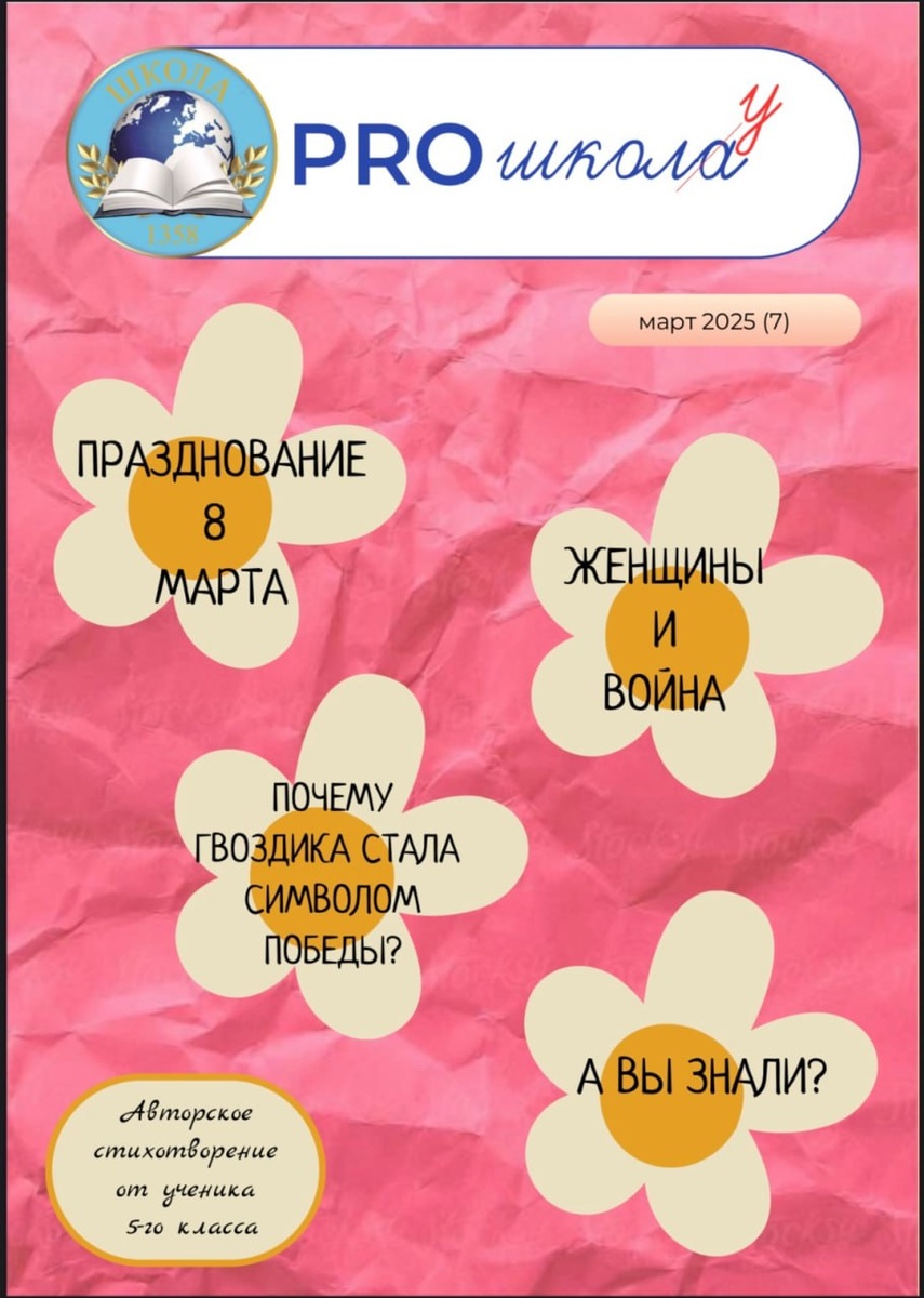 Завершился март, но его атмосферу сохранила для нас редакция 3-го школьного корпуса. Вашему вниманию мартовский выпуск школьной газеты. Вы узнаете о женщинах, которые совершили героические поступки во времена войны, об истории гвоздики, а также несколько занятных фактов о цветах. #школа1358 #ДОНМ #ШколыКолледжи