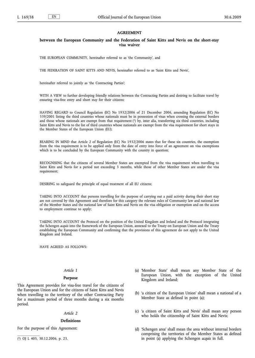 «Каждая страна из Карибской пятерки имеет индивидуальное соглашение с Евросоюзом про безвиз. Приведу в качестве примера Сент-Китс и Невис. Вот это соглашение от 2009 года, где есть пункт о том, что действие обязательств может быть прекращено в течение двух месяцев фактически по любой причине после уведомления. Безвизовые соглашения Антигуа, Гренады, Сент-Люсии, Доминики с ЕС все аналогичные. Так что нет ничего нового в том, что Европейский парламент предоставил Европейскому союзу право, которое у них уже есть.
