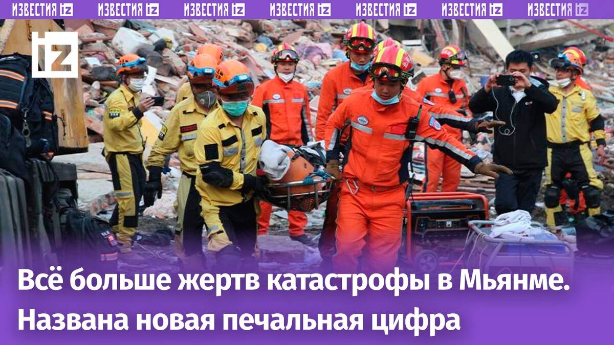 Число жертв землетрясения в Мьянме достигло 2719. Об этом 1 апреля сообщило издание China News со ссылкой на Центральное телевидение Китая (CCTV). Также отмечается, что более 4,5 тыс. человек пострадали, и свыше 400 считаются пропавшими без вести. При этом в CCTV добавили, что количество погибших может увеличится. 28 марта в азиатской республике были зафиксированы два землетрясения магнитудой 7,7 и 6,4. Эпицентр одного из них находился в 31 км северо-западнее города Мандалай. На следующий день в Мьянму прибыло более 100 российских спасателей для оказания помощи пострадавшему населению. Так, в городе Мандалай сотрудники МЧС РФ вместе с коллегами из Китая вытащили из-под завалов женщину, которая пролежала там более двух суток.