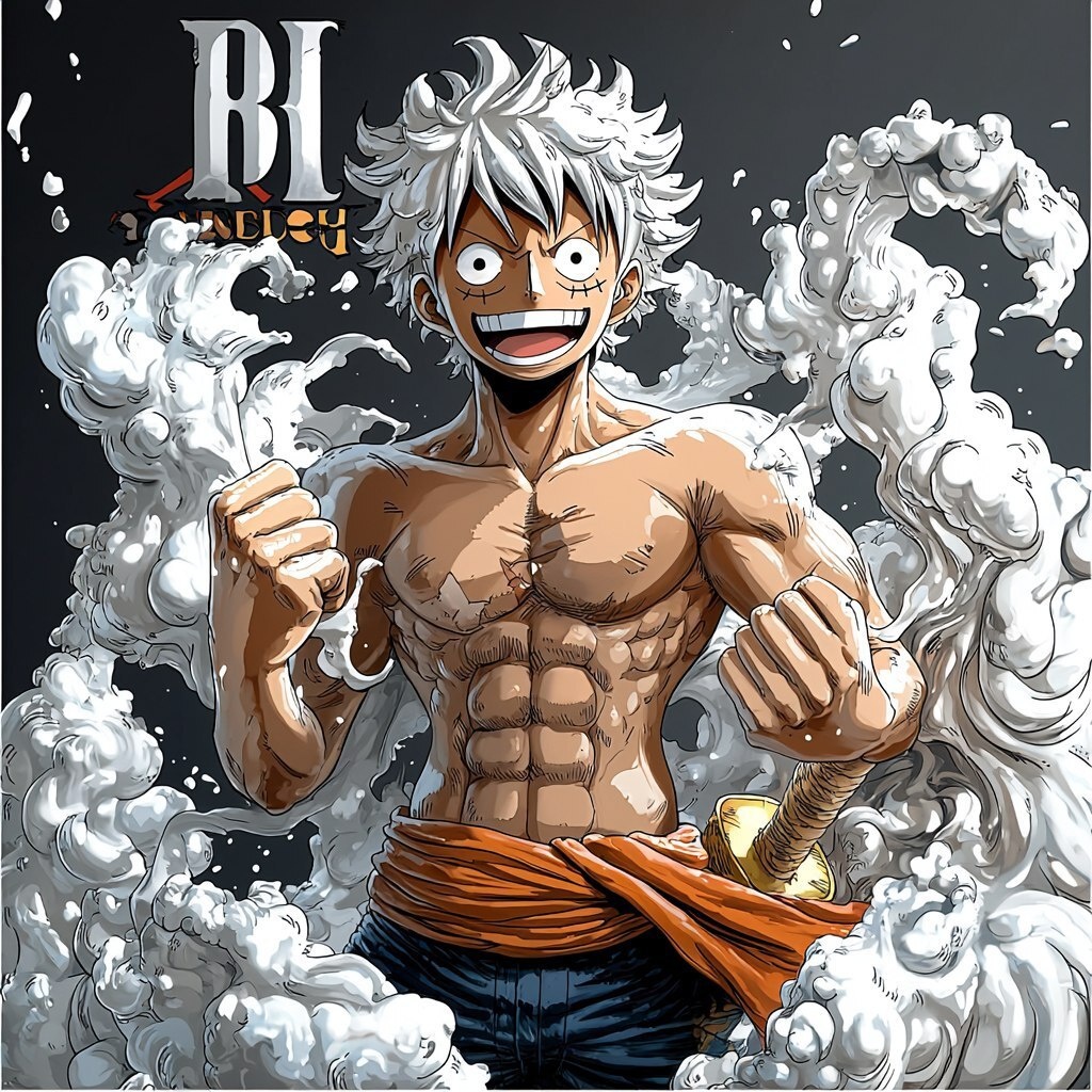 Создано на основе запроса: One piece, Luffy, level 5,Limit Challenge,shape change, natural action, ready for battle, muscular, super clear