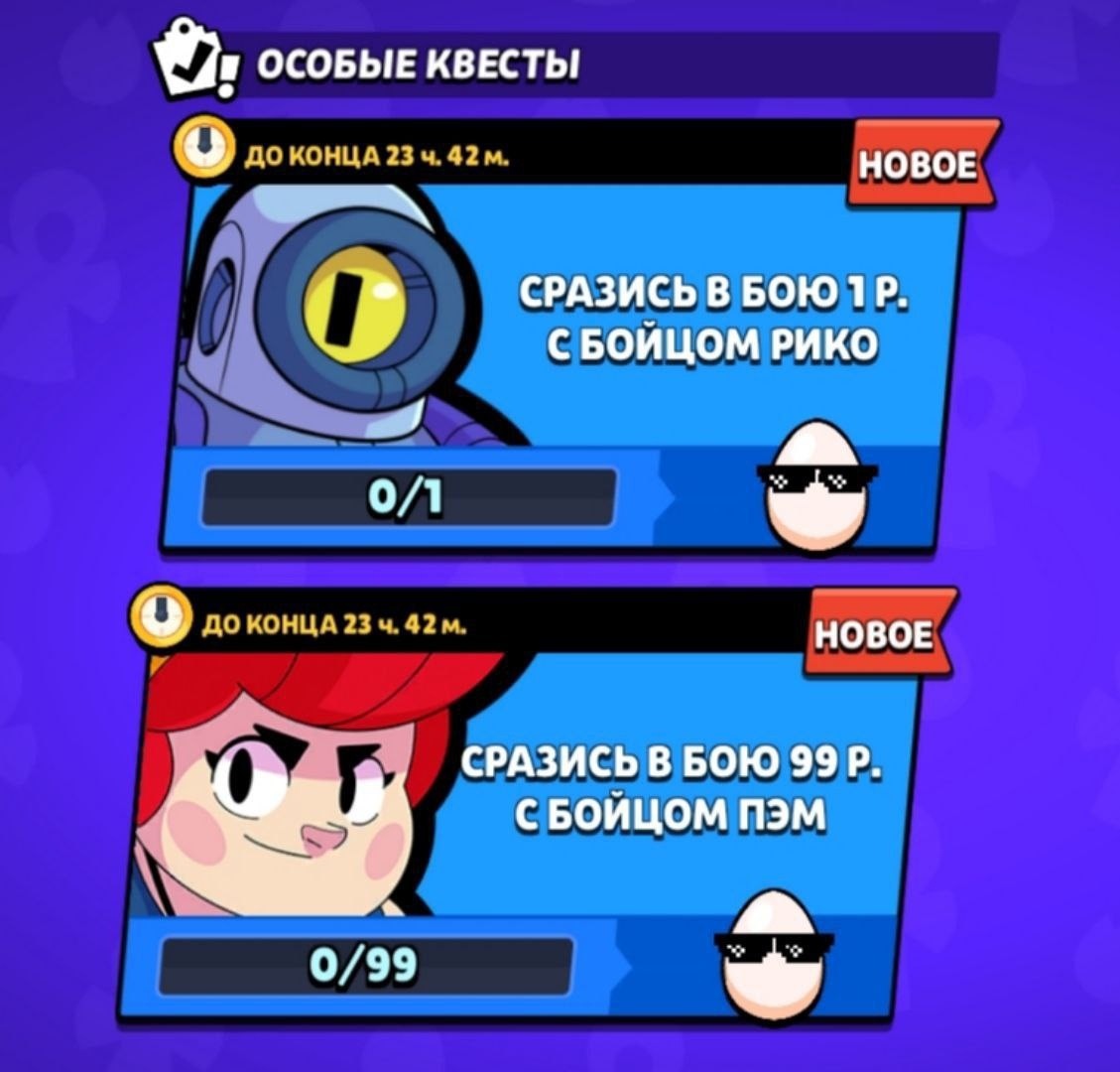 😄 А на чьей стороне ты? Появилось 2 новых квеста. У вас есть выбор, сыграть 1 раз за Рико или 99 раз за Пэм. За прохождение вы получите крутой значок. Мир Supercell. Подписаться