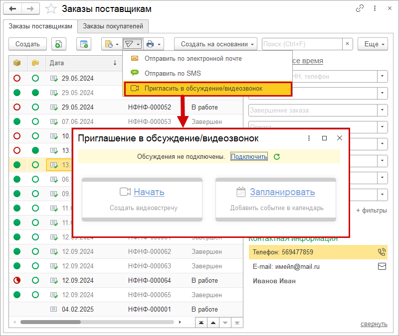 Новое в 1С:УНФ: проведение видеовстреч с клиентами через систему взаимодействия