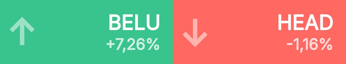 🔺 Топ-10 лидеров роста среди крупнейших акций: Белуга Гру • 576 ₽ • 7,26% Селигдар • 52,38 ₽ • 4,16% М.Видео • 122 ₽ • 3,13% ПИК • 548 ₽ • 2,62% ГК Самолет • 1 298 ₽ • 2,61% ТГК № 1 • 0,01 ₽ • 2,51% Совкомбанк • 17,38 ₽ • 2,39% Ренессанс • 128 ₽ • 2,36% Юнипро • 1,85 ₽ • 2,27% ВИ.ру • 106 ₽ • 2,03% 🔻 Топ-10 лидеров падения среди крупнейших акций: HeadHunter • 3 319 ₽ • -1,16% Северсталь • 1 186 ₽ • -0,19%