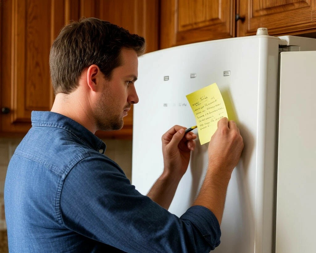 Белый листок, прилепленный к холодильнику тем самым скотчем, который вечно заканчивается в самый неподходящий момент. Его почерк — неровный, торопливый, будто писал на коленке в метро. "Мне нужно время. Не ищи меня."