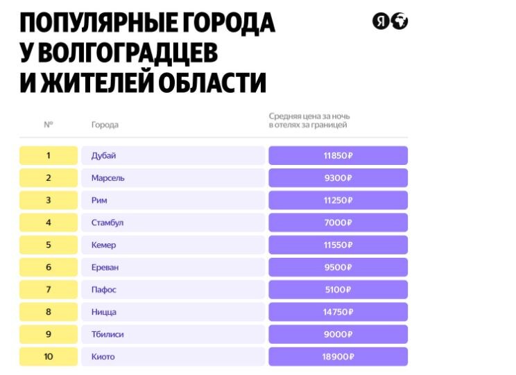 Также волгоградцы устремились в турецкий Кемер, столицу Армении Ереван, Пафос в Кипре, французскую Ниццу, грузинский Тбилиси и японский Киото.