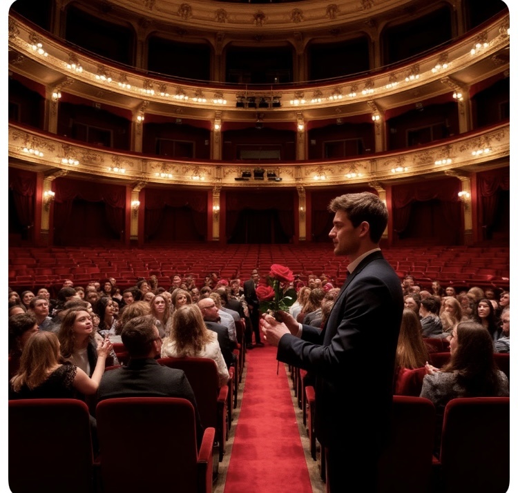 Я собиралась в театр 🎭 туда приехал муж моей соседки и подарил мне розу, волнуясь, он сказал, что я утончённая, и что любит меня. Потом туда приехали его жена с сыном и он подарил ей букет 💐 А я грустно смотрела на счастливую семью, но остался ли он с женой все же осталось неясным. 🤫