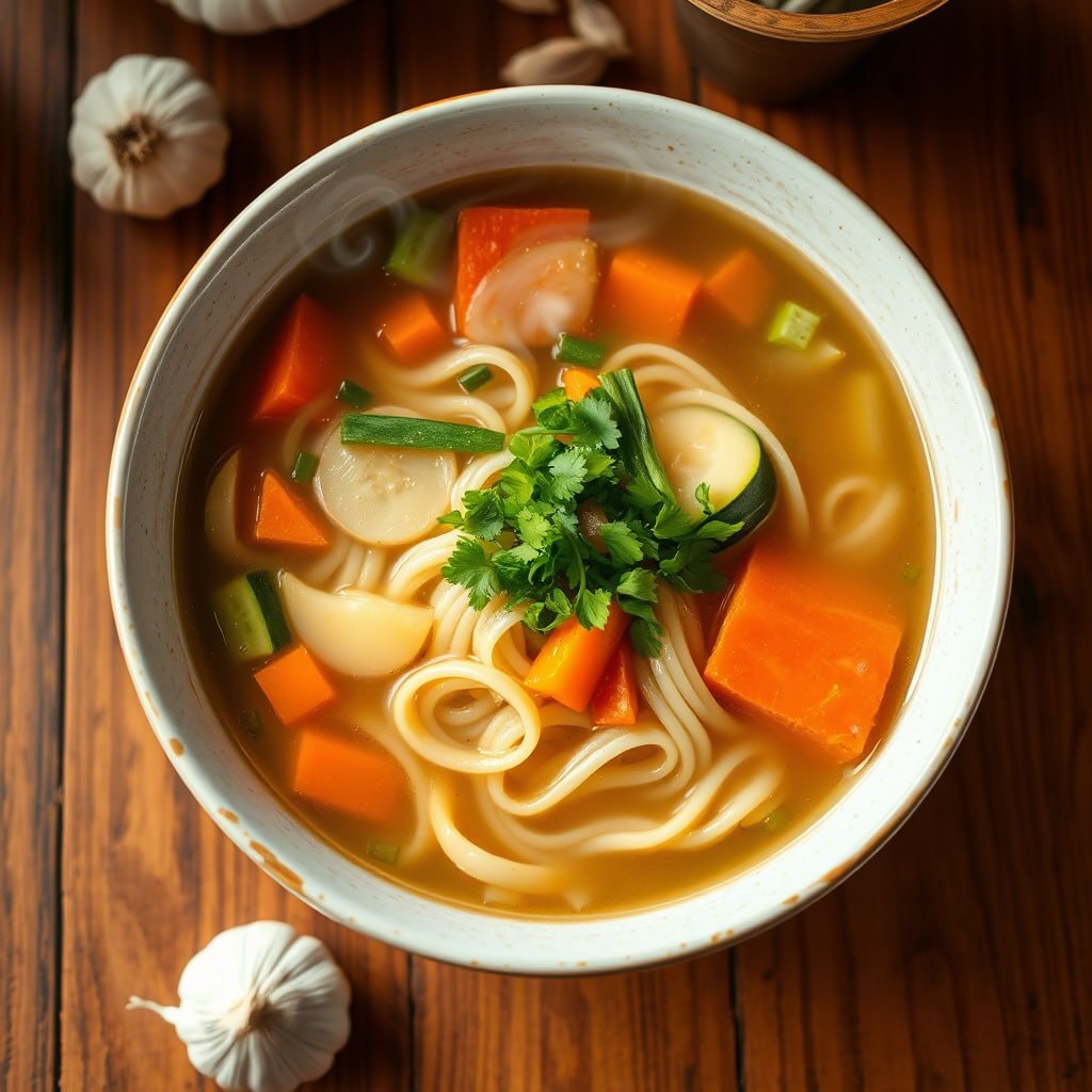 Суп с лапшой соба — это сытное и полезное блюдо японской кухни. Ингредиенты: 1 морковь (нарезанная соломкой) 1 цукини (нарезанный соломкой) 1 стебель сельдерея (нарезанный) 1 зубчик чеснока 1 стакан лапши соба 1 л овощного бульона 1 ст.л. соевого соуса Соль, перец по вкусу. Зелень для подачи Приготовление: В кастрюле обжарьте чеснок, затем добавьте морковь, цукини и сельдерей. Влейте овощной бульон и доведите до кипения. Добавьте лапшу соба и варите 5–7 минут. В конце добавьте соевый соус, соль и перец. Подавайте с зеленью. С Вами наверное #правильное_питание #рецепты #рецепт #летоблизко #обед