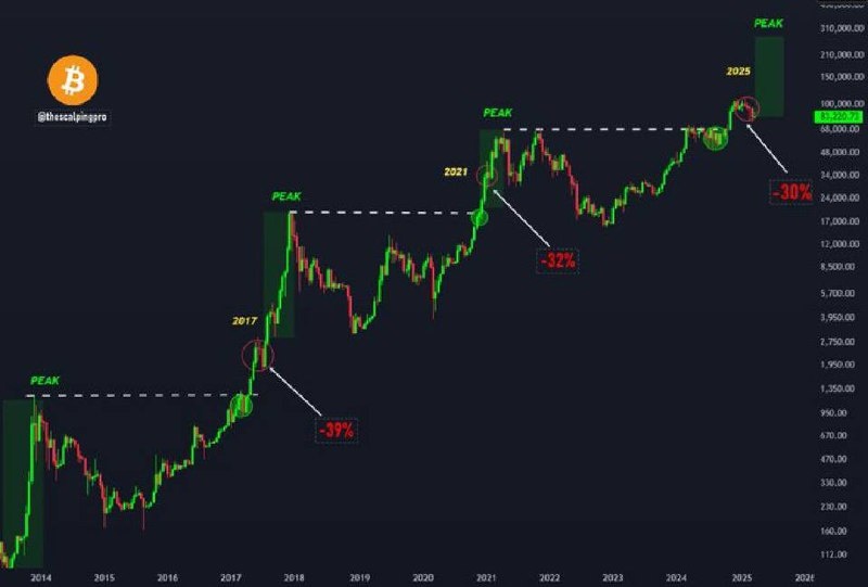 Резкое падение — это не конец, а разгон? Каждый цикл биткоина перед пиком делал резкое движение вниз. В 2017 — минус 39%. В 2021 — минус 32%. И только потом — финальный выстрел вверх. Сейчас: Биткоин уже упал с $109,000 до $76,000 — минус 30%. Совпадение? Возможно, мы наблюдаем не крах, а обычную циклическую передышку. Нечто вроде глубокой затяжки перед тем, как выдохнуть в космос 🚬 На что стоит обратить внимание? Если рынок повторяет паттерн, впереди нас ждёт последний рывок. А значит, держать стратегию — важнее, чем поддаться эмоциям. Что делать? Подумайте, вы точно готовы к последнему этапу? Пик цикла не приходит тихо — он приходит через боль, страх и сомнения. Но именно здесь создаются легенды. #коррекция