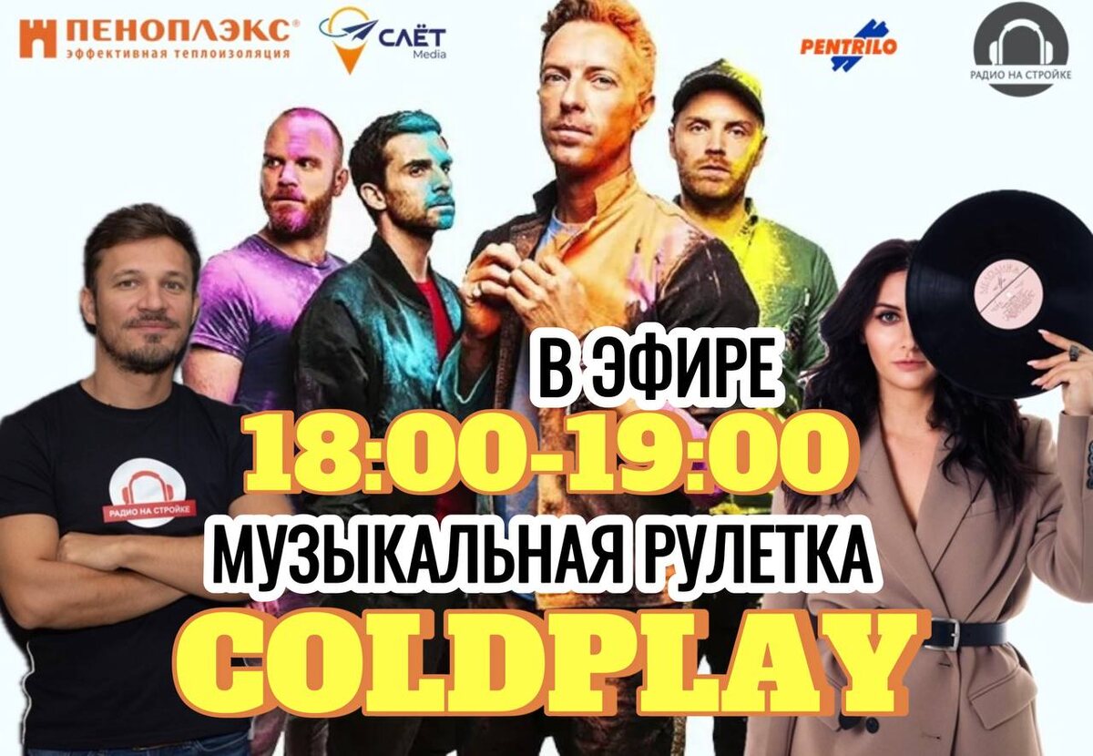 🎼МУЗЫКАЛЬНАЯ РУЛЕТКА🎼 🎧Подключайтесь к прямому эфиру Радио на Стройке с 1️⃣8️⃣:0️⃣0️⃣➖1️⃣9️⃣:0️⃣0️⃣ Ведущие программы: 🎙Дмитрий Давыдов - ведущий, музыкант, меломан 🎙Евгения Калихова - киновед, журналист и просто творческая личность 📼Говорим о группе COLDPLAY! 📄Чат для друзей @radionastroike_rus 🖥Сайт радио Www.radionastroike.ru 💬Вступай в Чат Радио на Стройке ДЛЯ СВОИХ Генеральные партнёры Радио на Стройке: 🔖компания «ПЕНОПЛЭКС» - системные решения в утеплении дома с использованием современных технологий 🔖компания PENTRILO - малярные инструменты из Испании #инструментимеетзначение 🔖 Слет Медиа - масштабные строительные мероприятия, объединяющие настоящих профессионалов и экспертов своего дела