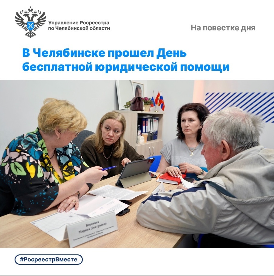 31 марта 2025 года представители Управления Росреестра по Челябинской области приняли участие в Дне бесплатной юридической помощи, организованном под эгидой Уполномоченного по правам человека в Российской Федерации и Ассоциации юристов России. День бесплатной юридической помощи прошел в Штабе общественной поддержки Челябинской области. Южноуральцы смогли в одном месте получить консультации юристов, адвокатов, нотариусов, представителей многих ведомств нашего региона. В результате порядка 130 человек получили ответы на свои вопросы. В мероприятии приняли участие заместитель руководителя Управления Росреестра по Челябинской области Марина Воронина, начальники отделов государственной регистрации недвижимости жилого назначения Ольга Фадеева и координации и анализа деятельности в учетно-регистрационной сфере Юлия Коваленко. За время проведения консультирования к представителям челябинского Росреестра обратилось 8 южноуральцев, у каждого из них был вопрос, который требовал профессиональной п